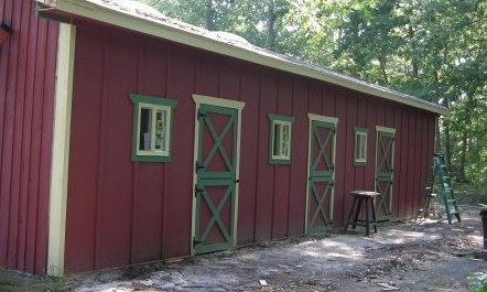 The “big barn out back,” nearly the size of our “little house up front,” was in such a state of neglect that a couple of our friends actually suggested we just tear it down. Freddie included. (More on our BFFreddie later.) NO WAY was I going to witness the sacrifice of this character and NO WAY could we afford building a replacement from the ground up. This was going to be our garage and the Harley workshop/hangout; divided in purpose with the back half where the built-in tack room and feed storage bins were to remain “on task” for farm-related things and animal housing when needed. Sliding stall doors from the front half (which was partially gutted to accommodate our tractors and implements) are going to be roughly restored and definitely repurposed in the house… eventually.